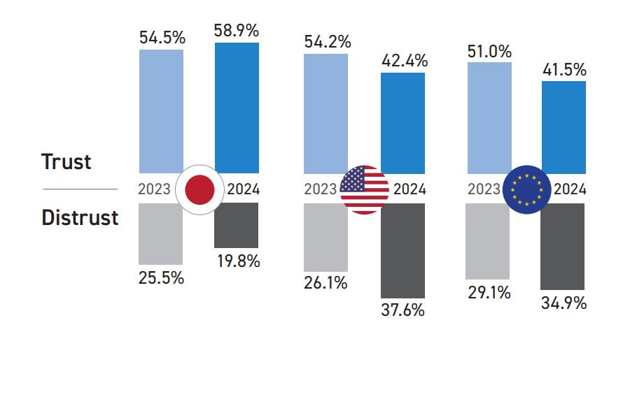 日本仍然是最深受东南亚民众信任的大国(58.9%),其次是美国(42.4%),略微领先欧盟(41.5%)。