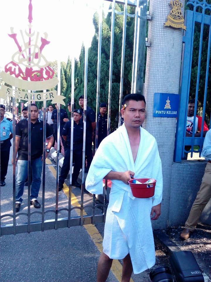 2016年12月21日,嘉马因住家已连续4天没有水供,因此他披着毛巾、手上拿着牙刷和其他沐浴用具,要求进入雪州政府大厦洗澡。