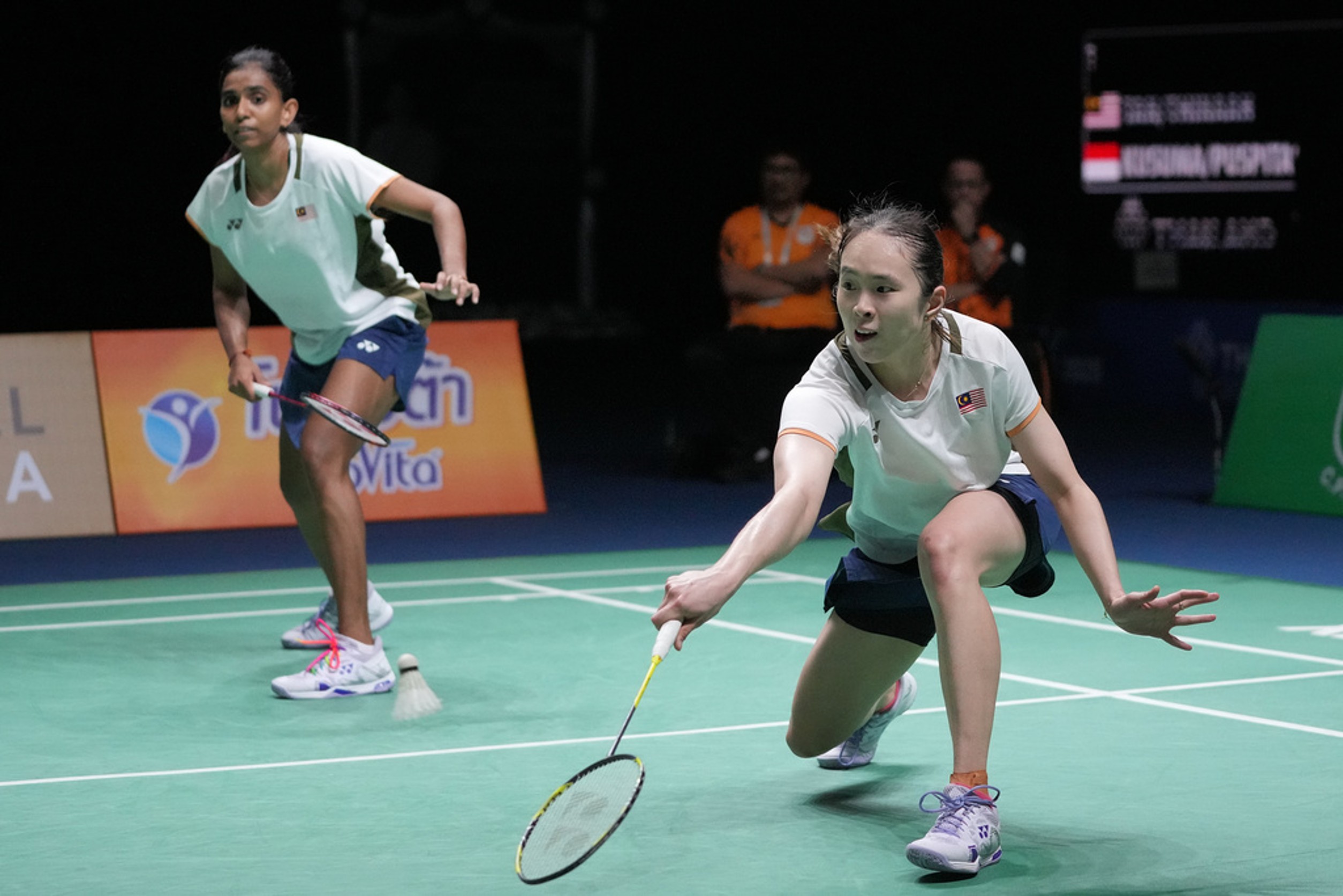陈康乐与蒂娜自 2019 年搭档以来,首次携手征战泰国东运会。世界排名第二的“乐蒂组合”在本届赛场中势不可挡,顺利闯入决赛。